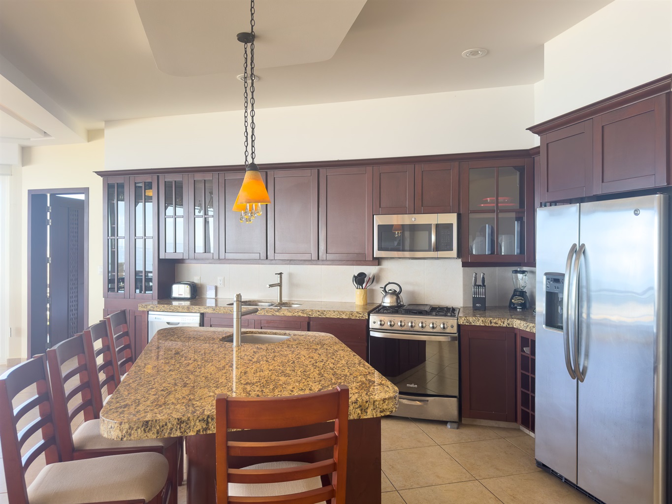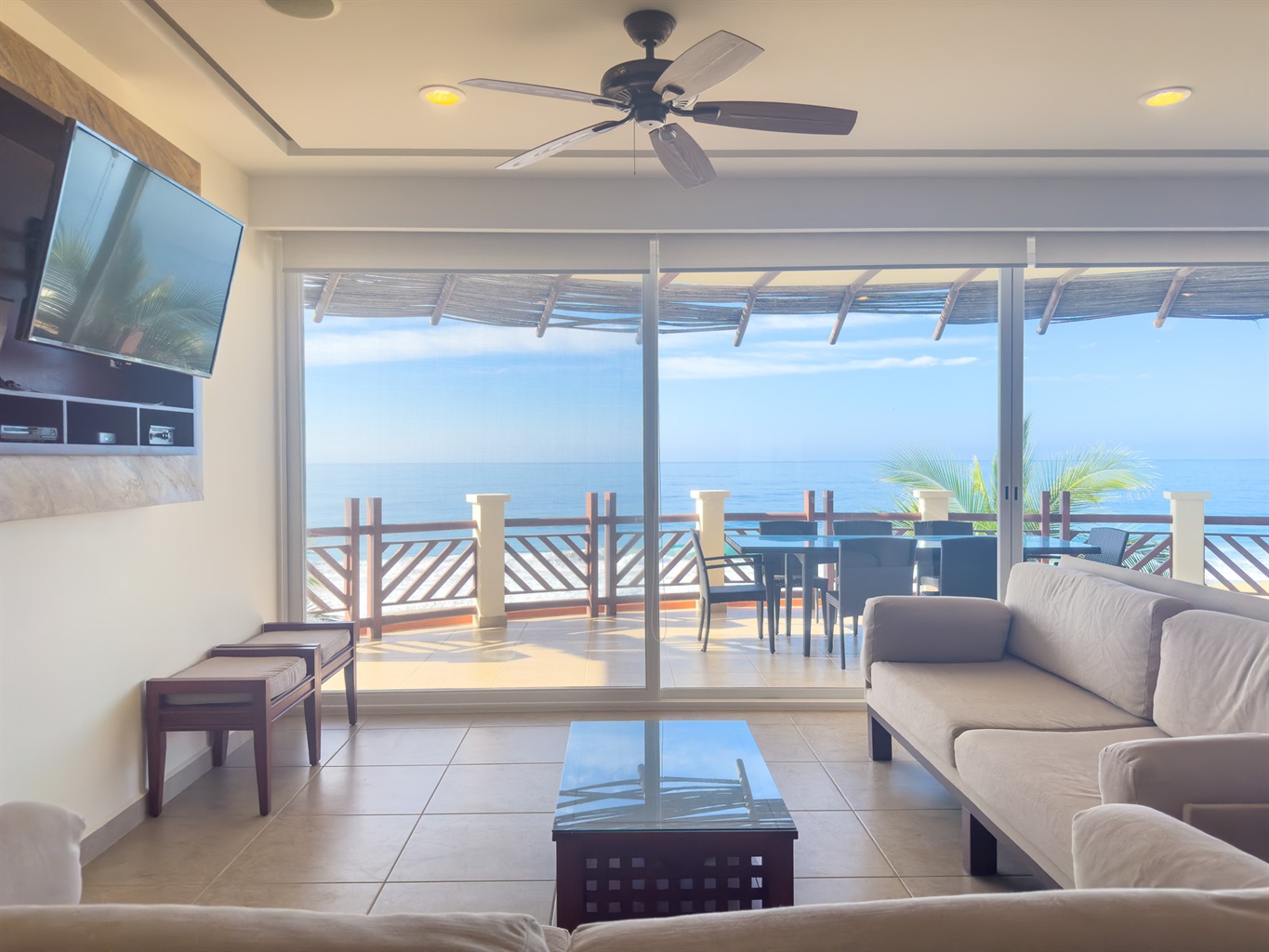 Forget your worries in this spacious 4-bed, 3-bath on the 3rd level in great condition, with amazing views of the Pacific Ocean and A/C in all rooms. Decorated in Mexican Style and has Free Parking, and this whole resort is on an amazing 22km Beach. This is a 4-bed/3-bath, so you get access to the whole home, making it a very large Beach Front 4-bed/3-bath with an Ocean View. There are two master suites with king beds, in-suite bathrooms, and ocean views. The 3rd and 4th bedrooms have a shared bathroom. One has a queen bed, and the other has two twin beds.